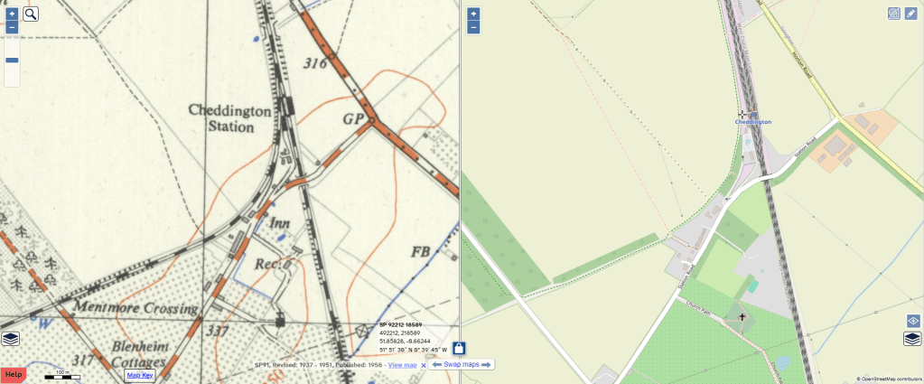 Cheddington is historically famous as the first ever branch line ran from here to Aylesbury. Long gone, the track would have followed the curve of the hedgerow on the right in the above photo – you can see on the map below.
