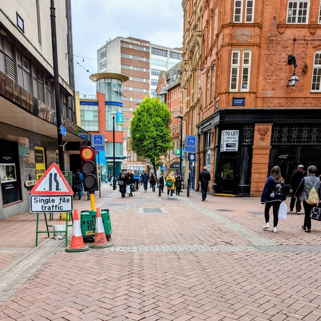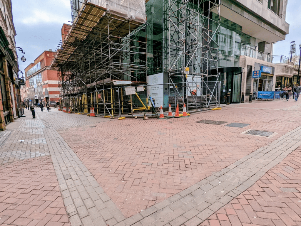 The road is no narrower than it would have otherwise been and is in a pedestrianised area anyway…