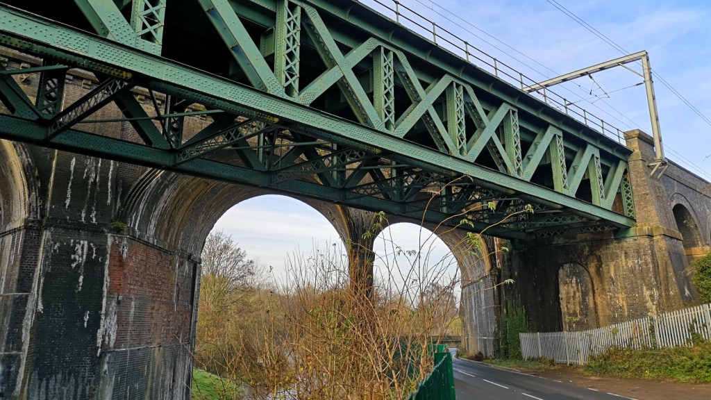 The original brick arches will date back to the opening of the line in 1868. The new steel addition no doubt is considerably newer!