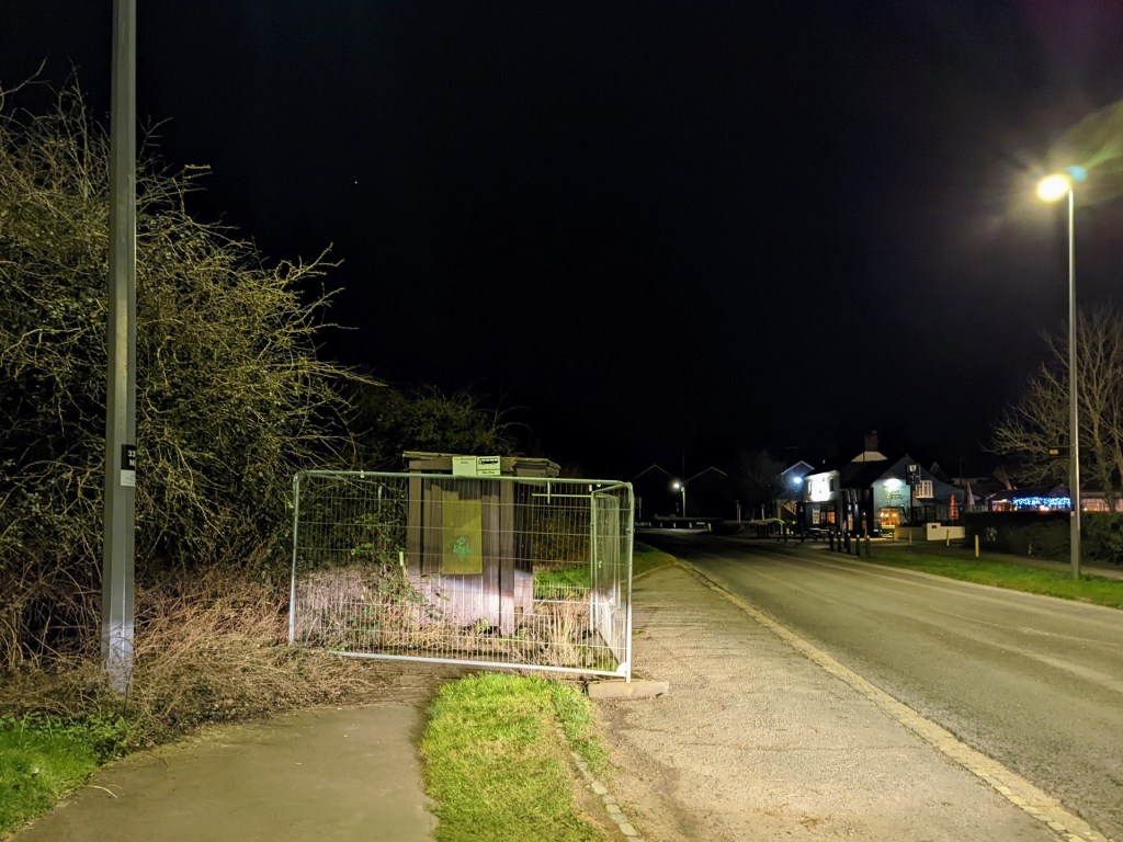 This abandoned* bus shelter on the main road past Wavendon has been cordoned off, to prevent it attacking anyone.