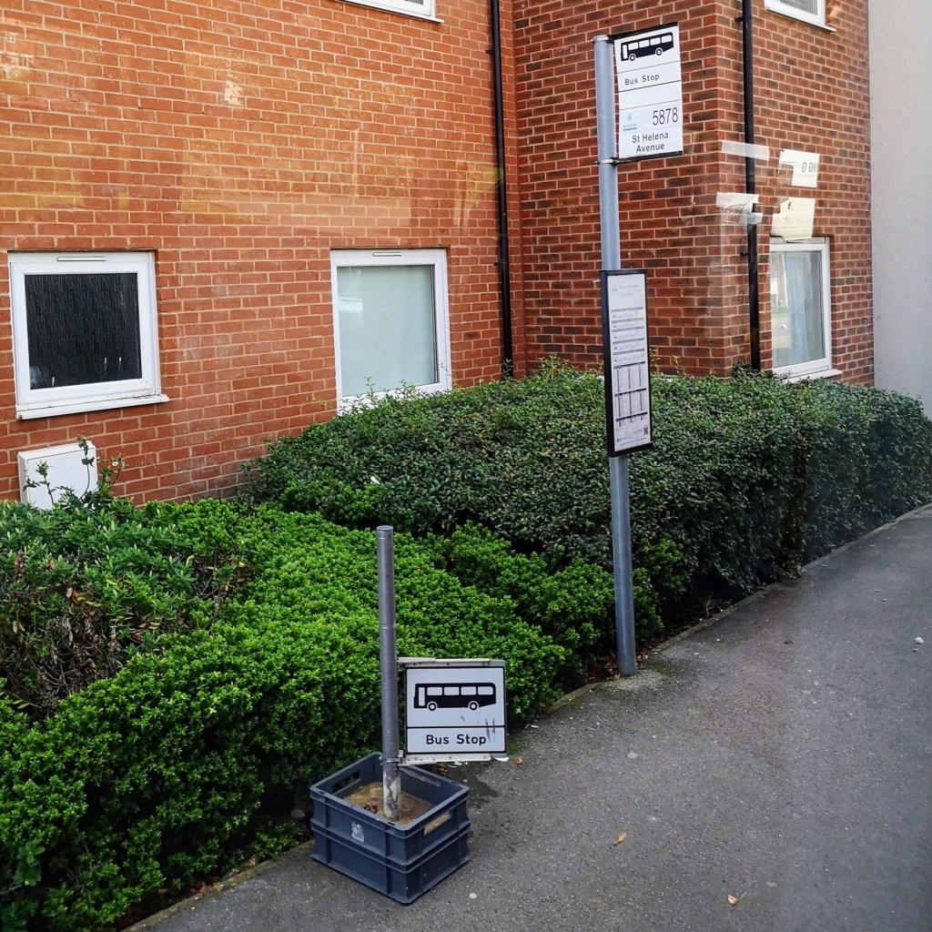 I suddenly feel the need to have a portable bus stop flag with me at all times, to hail down a bus wherever I please!