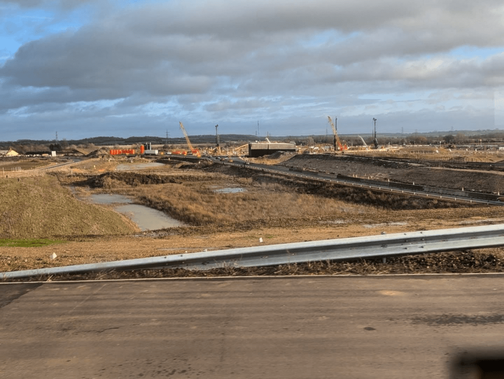 The first photo is the A421 looking towards Bedford (the original carriageways underneath us and the new temporary ones to the right)